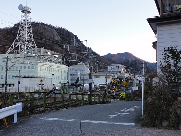 | 大月駅 | 踏切を渡る |