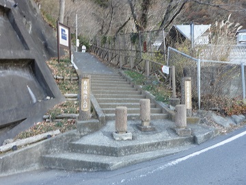 国道139号線に出て橋を渡り、坂を登って行けば左側に登山口があり、岩殿城跡入口・岩殿山丸山公園入口と書かれています。
