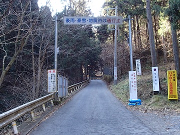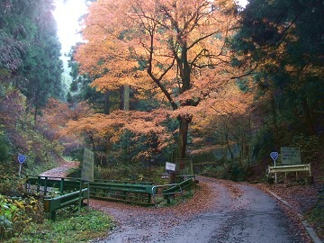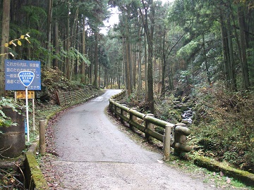 高尾駅北口から陣馬高原下行きのバスに乗り、30分ほどの終点で下車します。 陣馬高原下バス停から車道を行くとすぐに分岐があり、右は陣馬街道で和田峠へ、直進するのが底沢峠・明王峠への道です。 5分ほど行って集落が終わると寂しい林道に変わります。