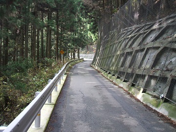 沢から離れると傾斜が増して、カーブしながら狭い車道をひたすら登っていきます。車がそこそこ通るので注意する必要があります。