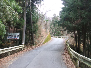 陣馬登山口の分岐を右へ進み、沢沿いの細い車道を登っていきます。