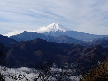 しばらく植林の急坂を登っていくと、やがて明るい道となり、富士山や三ツ峠山、道志山塊の見えるポイントです。 ゆっくり休憩していくとよいでしょう。