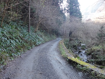しばらくは日影沢沿いを直線的に登っていきます。工事の車なども通るので注意します。 林道なので楽に登れると書いてあるガイドブックもありますが、傾斜がけっこう急なので楽ではありません。
