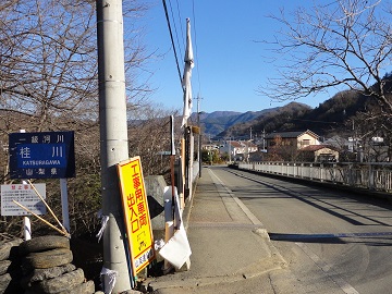 しばらく道なりに歩き、小学校脇を通って桂川を渡り、信号を直進します。 道標に従って歩いていけば田野倉駅に着きます。