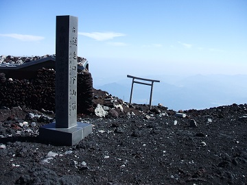 急坂を登りきって、狛犬の間を通って鳥居をくぐると、吉田口・須走口の山頂である久須志神社に着きます。