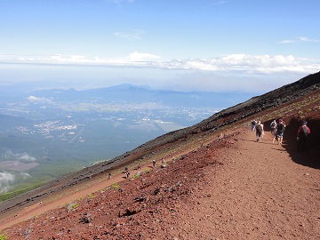 健脚な人は、山頂から六合目までは、軽く走って下れば1時間くらいで着きますが、普通に歩いて下れば2時間はかかります。