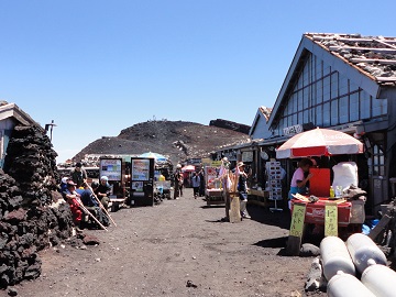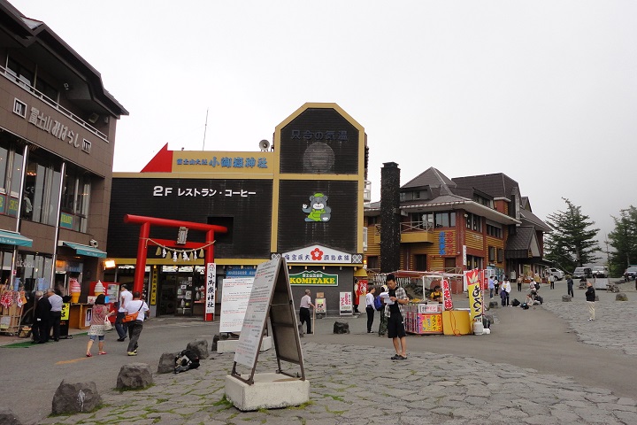 東京から来る場合、富士山五合目といえばここのことです。 富士スバルライン終点の五合目の標高は2305mと高く、登山ルート中の山小屋の数も多いので、最も人気があるコースです。 五合目には、小御岳神社のほかに土産物屋が建ち並んでいます。 観光地のようになっていて、登山客よりも観光客のほうが多いくらいです。 五合目へは、河口湖駅または富士山駅からのバスがたくさんあります。また、新宿駅からの高速バスもあります。