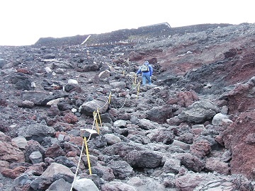 | 吉田口下山道に入る | ジグザグの下りが続く |