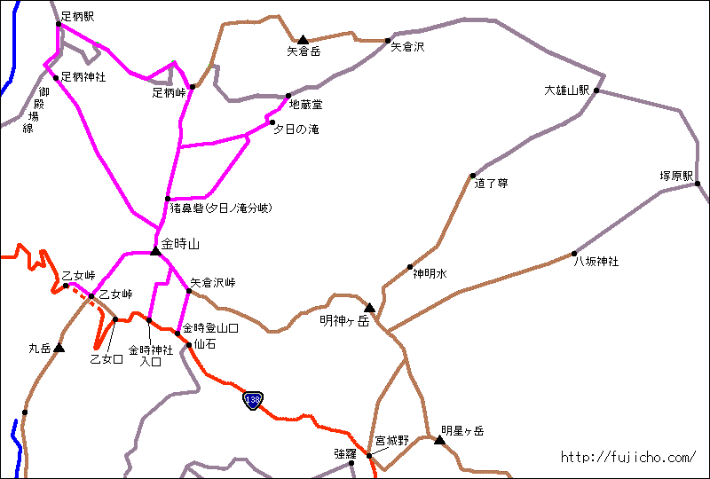足柄駅−足柄峠−夕日ノ滝分岐−金時山