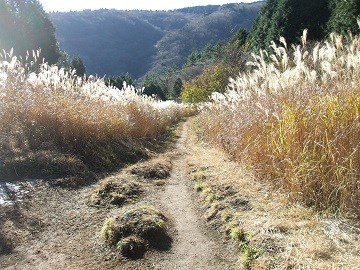 気持ちよくススキの道を緩やかに登っていき、振り返ると丹沢の大山から塔ノ岳方面が見えます。