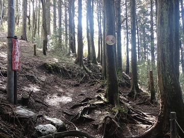 大文字から登山道に戻り、10分ほど緩やかに登っていけば尾根に出ます。