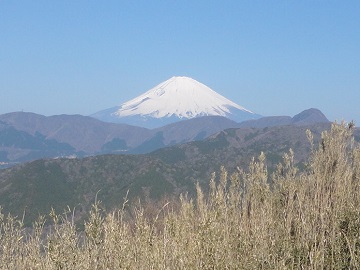 富士山を見ながら何度かアップダウンすると、鞍部で宮城野からの道が合流します。