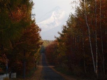 ちゃっぷ林館をすぎた辺りから駒ヶ岳がよく見えるようになります。 畑の広がる長閑な道を歩いていくと、徐々に駒ヶ岳の形が変わって見えるようになります。