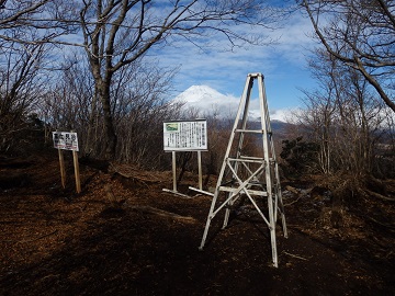 越前岳の山頂にはベンチやテーブルが置かれています。 富士山方面には灌木があり、眺めはよくありませんが、南側の展望はよいです。