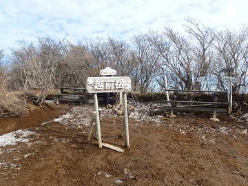 富士見台の案内板には、昭和13年に発行された五十銭紙幣の図案が、このから撮影された富士山であると記されています。 富士見台から緩やかに登っていけば、標高1504mの越前岳山頂です。