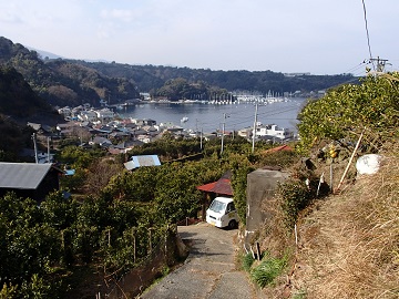 | みかん園 | 急な農道 |