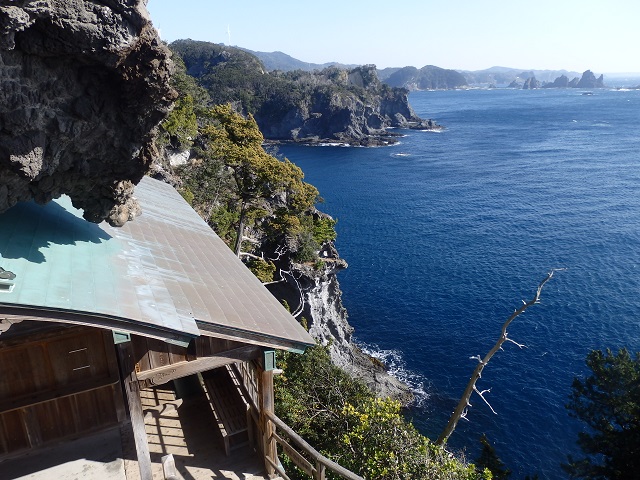 石廊崎灯台から遊歩道を下っていくと岩場に石室神社があり、太平洋を見渡すことができます。