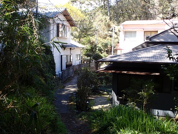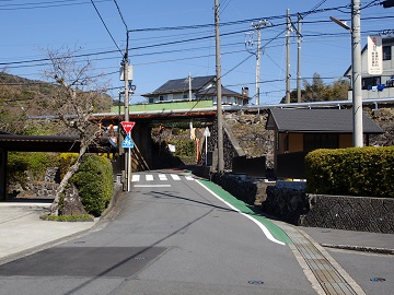 3体の石仏から急坂を上がり、伊豆急のガードをくぐります。 洋品店の前を右折し、しばらく行けば伊豆高原駅に着きます。