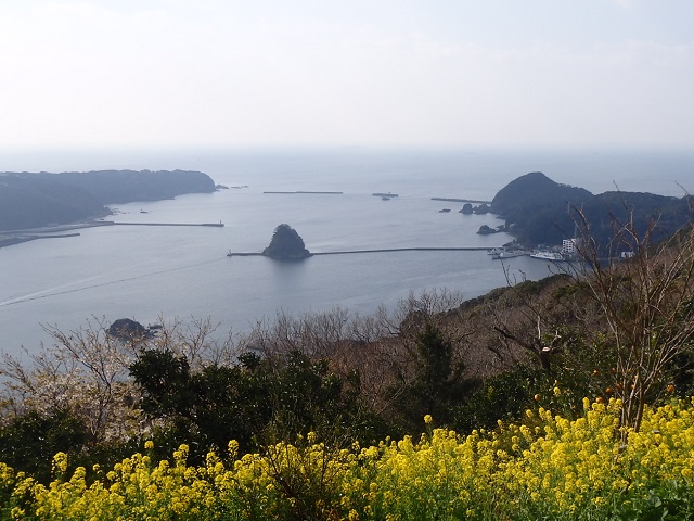 愛染堂から季節の花が咲く道を歩いていてロープウェイ山頂駅へ向かいます。 展望台からは下田市街や下田港を見下ろせます。