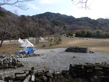 やがてキャンプ場のような広い場所に出て、砂利道を歩くと旧下田街道です。