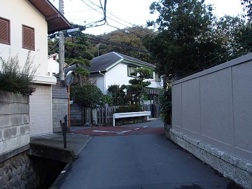 上記の砂利道を右折して素掘りのトンネルをくぐると鎌倉駅まで約800mです。