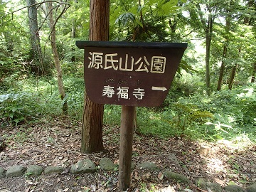 階段を上った源氏山山頂は、祠があるだけでひっそりとしています。周囲にはアジサイが植えられています。