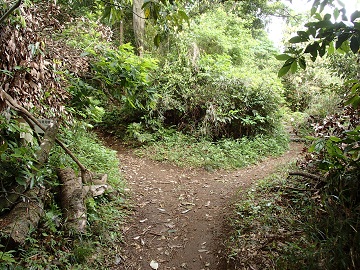 横浜横須賀道路に架かる橋を渡ると、やがて関谷奥見晴台への分岐です。 右は関谷奥見晴台へ、左は鎌倉天園への近道です。