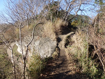 パノラマ台への分岐から下っていくと、左側が大切岸と呼ばれる岩壁になっており、逗子方面の眺めがよいです。 大切岸は石切場跡で、遊歩道が整備されています。