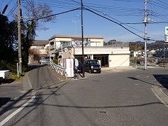 横須賀線・衣笠駅を出て、通りを右へ5分ほど進むと衣笠十字路バス停があります。