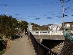 津久井浜高校をすぎ、津久井川沿いの歩道に入ります。