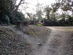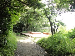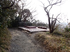 砲台山から分岐に戻り、広い砂利道を歩いていくとすぐ先に見晴台があり三浦半島が見えます。
