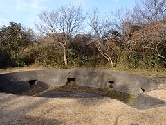 左へ折り返し、5分ほどいくとアンテナと砲台跡がある砲台山です。