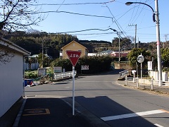 鳥居や農業用水池をすぎると、右前方に津久井浜高校が見えてきて、それを目印に歩いていきます。