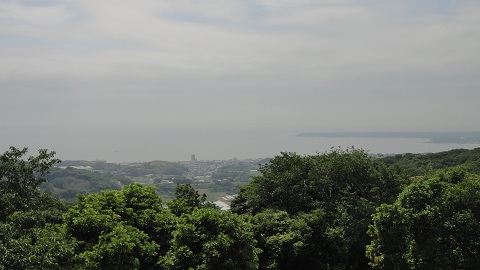 砲台山から分岐に戻り、すぐ先に見晴台があり三浦半島が見えます。