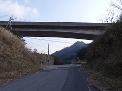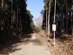 線路をくぐって反対側を進み、林道口へは右折します。田園風景を見ながら歩いていくと民家がなくなって林道になります。 やがて富津館山道路の高架をくぐると、大型車進入禁止の細い道になります。
