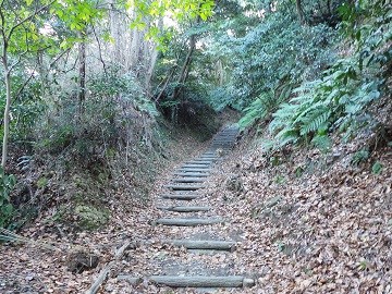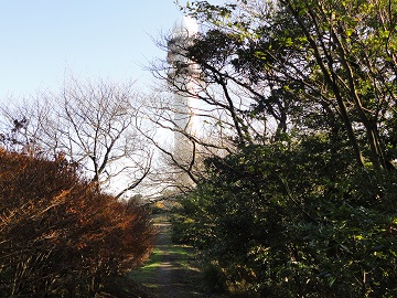 へっぴり坂をすぎると、大楠山まで緩やかな登りが続きます。 やがてアンテナが見ると大楠山・山頂の西側へ回り込み、NTT中継所をすぎて丸太の階段を登ると大楠山です。