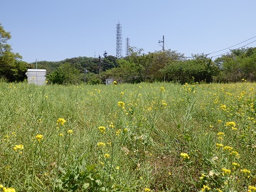 大楠平で春は菜の花やツツジ、初夏は紫陽花、秋はコスモスなどが咲きます。 雨量観測所には展望所があり、富士山や油壺、江ノ島、東京湾など360度の眺望です。 すぐ目の前にアンテナが林立する大楠山の山頂が見えます。