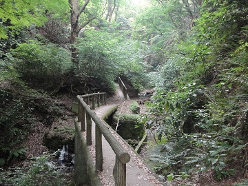 | 沢沿いの遊歩道 | 衣笠駅からの道と合流 |