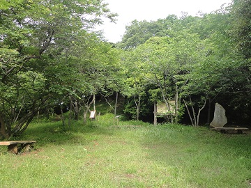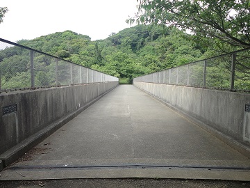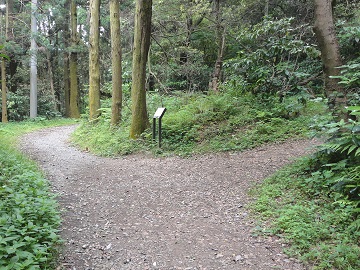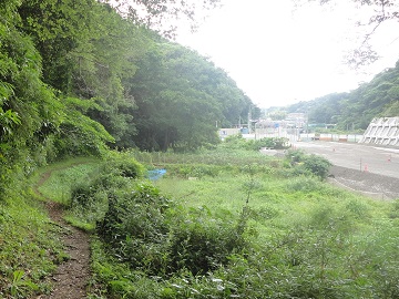衣笠城址は樹木の中で展望はありませんが、ベンチがいくつか置かれて休憩できます。 衣笠城址を出て細い道を少し登れば、山道に入りますが、しばらくは横浜横須賀道路沿いなので、車の音が聞こえます。 やがて階段を下ると、横浜横須賀道路に架かる大畑橋を渡ります。 山道からいったん車道に出て、またすぐに山道に入ります。 大畑橋から先はゴミ処理施設建設のため、迂回路を行くようになっています。(最近行っていないので、どうなっているか分かりません。)