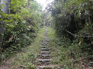 ゴルフ場沿いの道となり、ひと登りで大楠山の直下に出ます。 ここで山頂まで230段の階段を登る道と、遠回りする道に分かれます。 遠回りする道は、かなり歩かされた後に約150段の階段もあるので、230段の階段を登ったほうが楽だと思います。