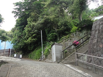 京浜急行・安針塚駅を出てガードをくぐり、民家の中を歩いていきます。 変電所をすぎると急坂となり、車止めを越えて遊歩道を登っていけば塚山公園に着きます。