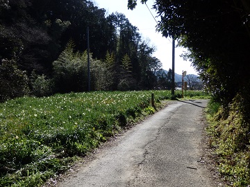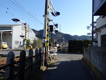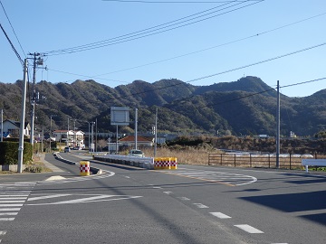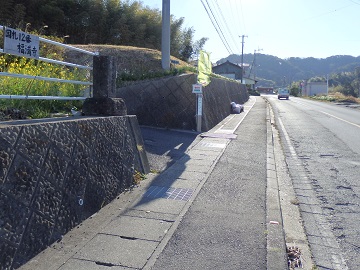 岩井駅から線路沿いを南へ歩き、踏切を渡って県道を東へ歩いていきます。しばらくは歩道がないので注意が必要です。