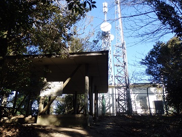 九合目をすぎると分岐で、仁王門があったそうです。 直進すれば北峰へ、左の石段を登ると観音堂、その左上が標高342mの富山南峰です。 南峰にはアンテナが建ち、あづまやがありますが、展望はよくありません。