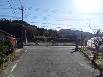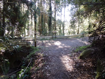 伏姫籠穴の山門から沢沿いを10分ほど歩き、富山中学校をすぎると往路で歩いた県道に戻ります。