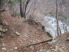| 用木沢出合 | 沢を渡る | 荒れた急坂を登る |