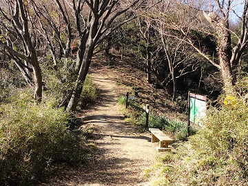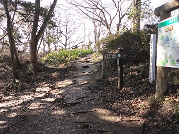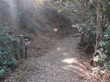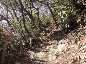 浅間山から階段を下ると坂田山からの道が合流し、湘南平まではもうひと登りです。