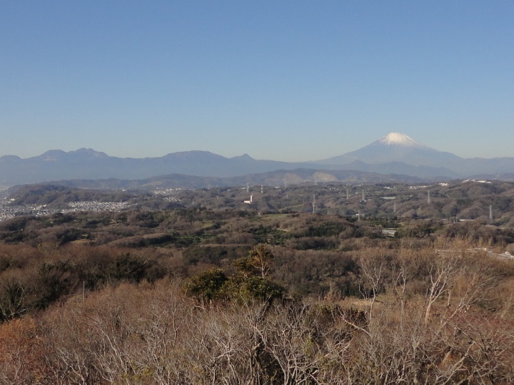 東側は相模湾に浮かぶ江ノ島の向こうに三浦半島、さらに房総半島まで見え、北側には大山や丹沢の山々が見わたせます。