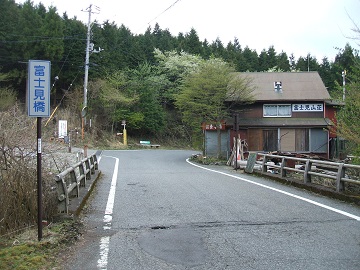 ヤビツ峠から車道をしばらく歩くと、富士見山荘が建つ富士見橋に着きます。 右へ少し下っていくと護摩屋敷の水、左へ少し登ると三ノ塔・塔ノ岳への登山口です。護摩屋敷の水をペットボトルに汲んでいくのもよいでしょう。